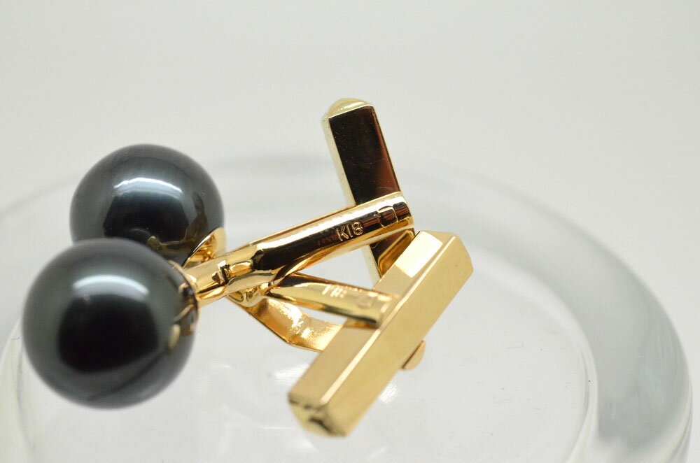 K14WG ホワイトゴールド K18 イエローゴールド 黒蝶真珠 タヒチパール 10mm カフリンクス カフスボタン ギフト対応