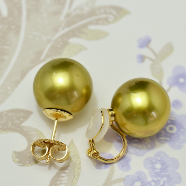 15.6mm黒蝶真珠ピアス/イヤリング 超激レアカラーの美しき特大珠 ナチュラルゴールド 奇跡のペアです KA10