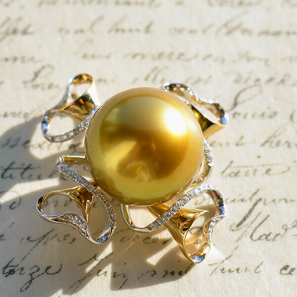 タヒチ黒蝶真珠パールリング【指輪】 15mm ピスタチオカラー K18製/D0.73ct