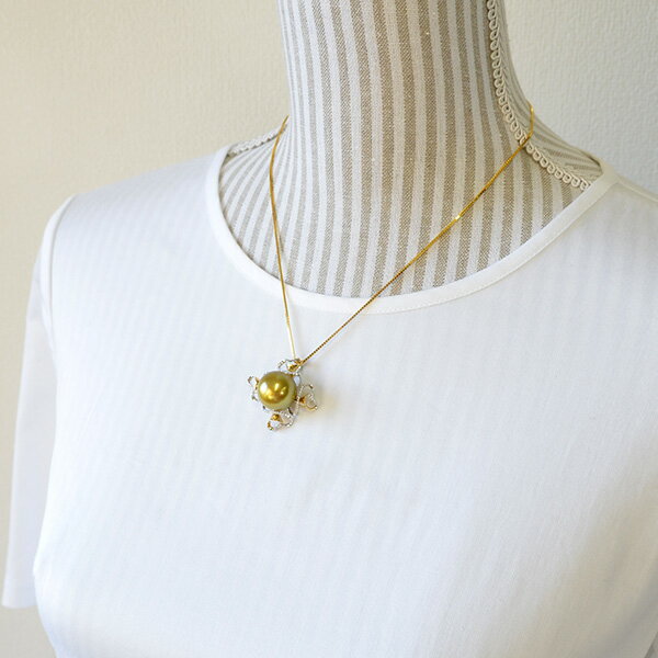 プラチナ 台 9mm 黒蝶真珠 ピーコックグリーン ペンダント