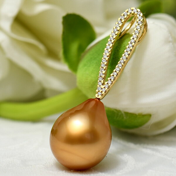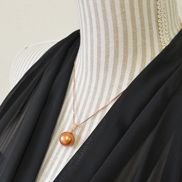 16mm黒蝶真珠&ダイヤモンドK18ペンダントトップ 超極レアのナチュラルゴールドカラー! 希少な特大サイズ KA10