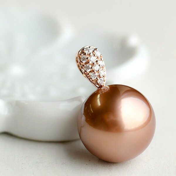 12mm ナチュラルブラウン 黒蝶真珠&ダイヤモンド K18PGペンダントトップ 奇跡の激レアカラー! KA10
